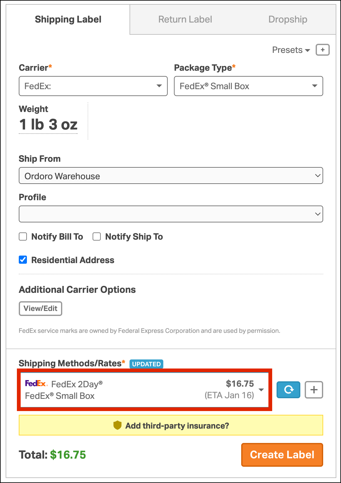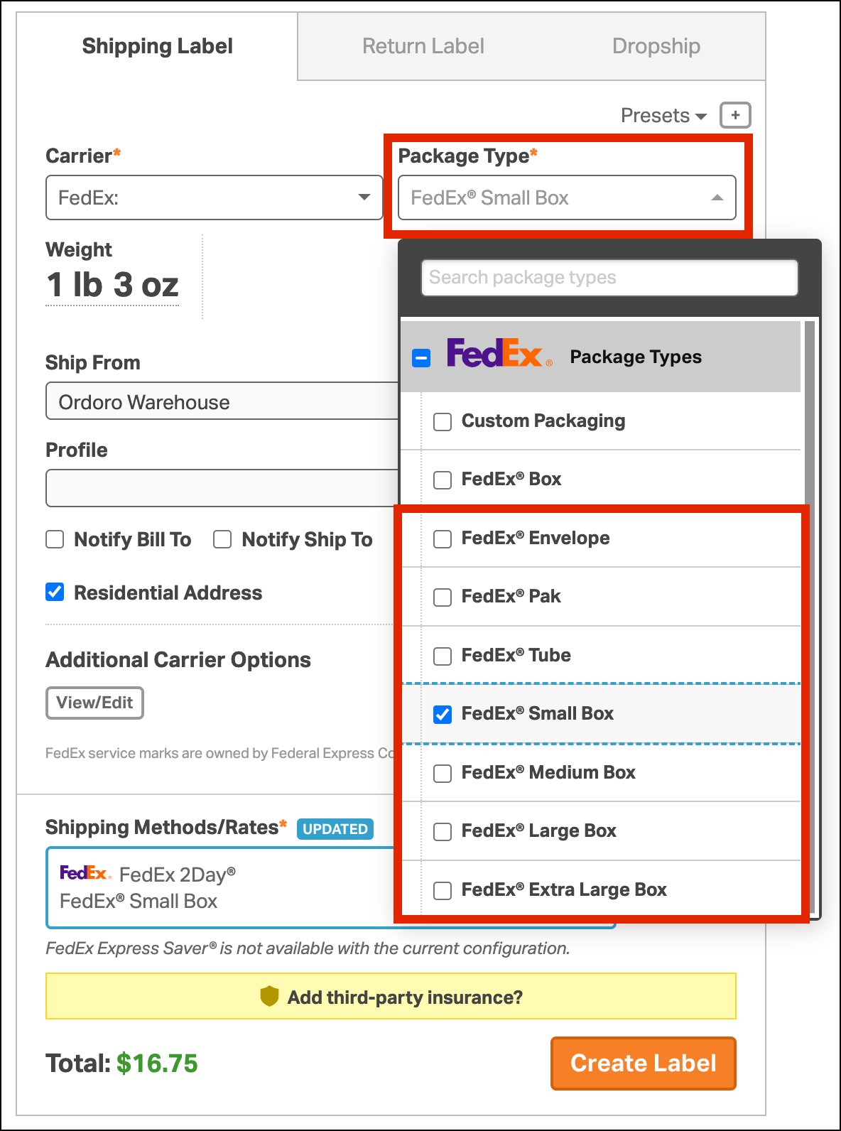 - How to create a FedEx One Rate label in Ordoro