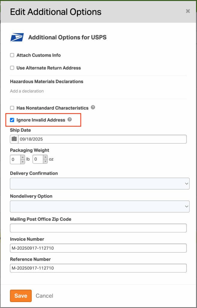 - When shipping with USPS Ship, you can enable a setting to bypass address validation.