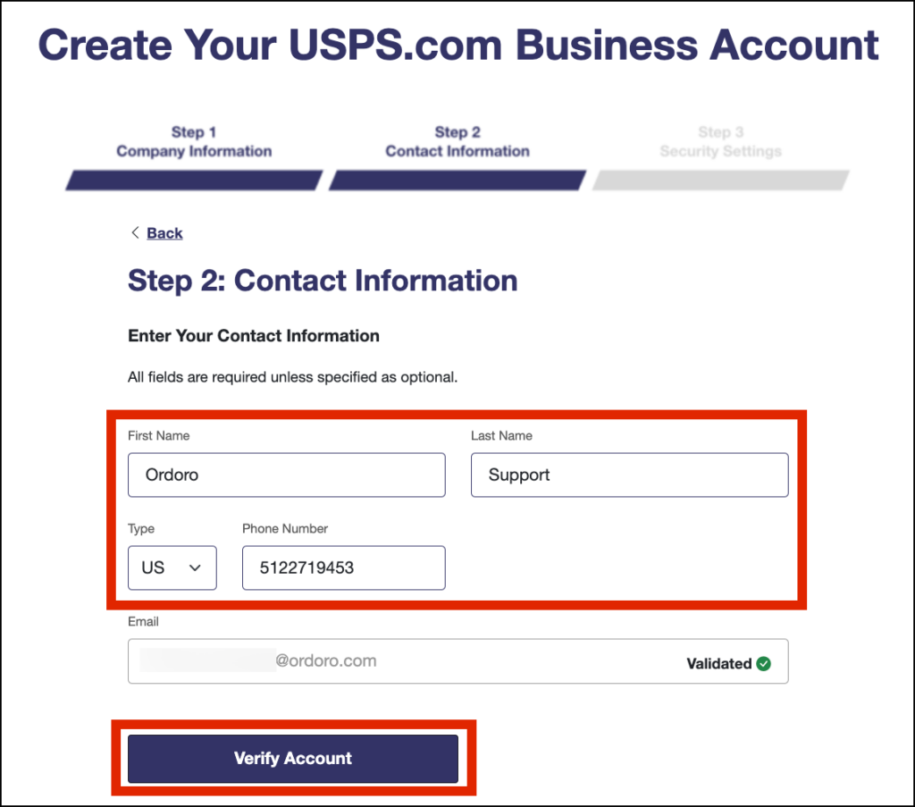 - Enter your contact information, then click Verify Account.