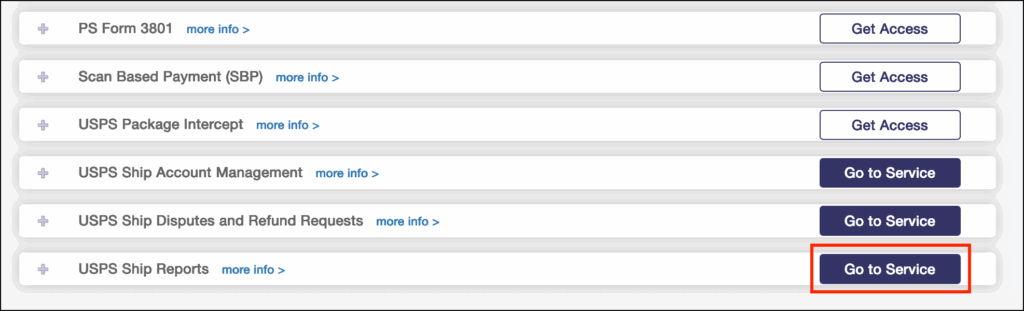- Find USPS Ship Reports and click Go to Service.