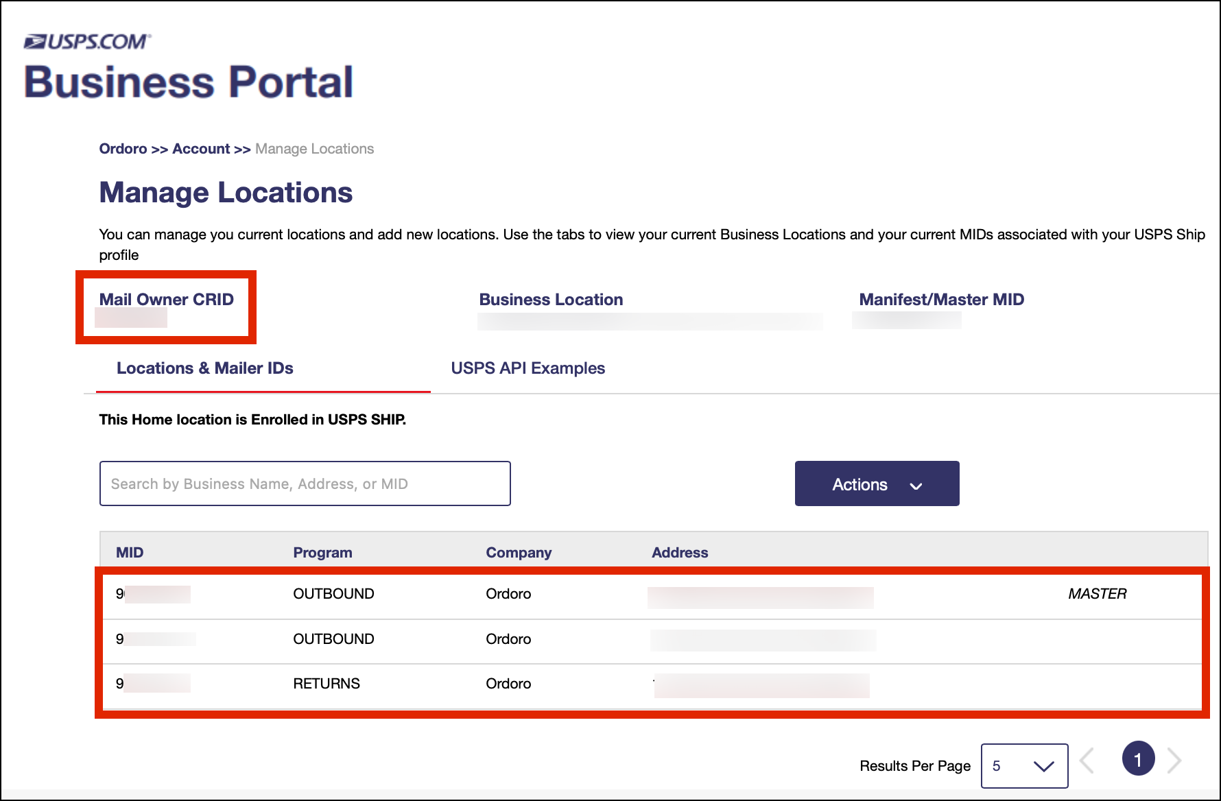 17. Under your USPS Ship carrier, select the Merchant CRID, Merchant Outbound MID, Merchant Manifest/Master MID, Merchant Return MID, and Merchant EPS (EPA) from the dropdown.