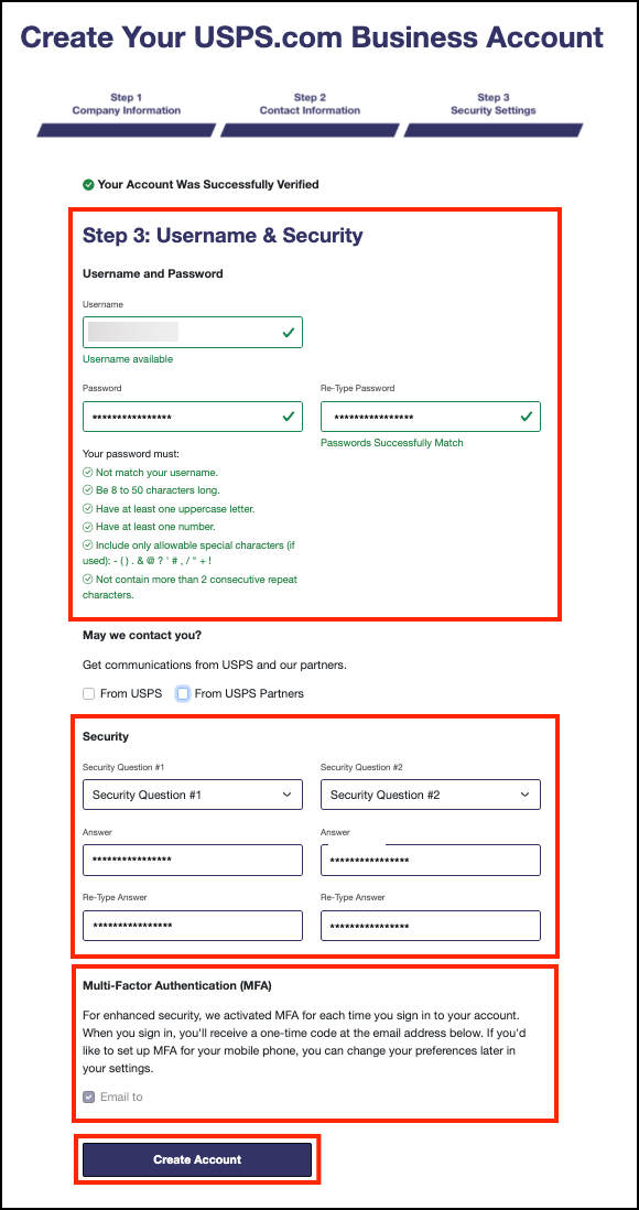2. Create a USPS Business account