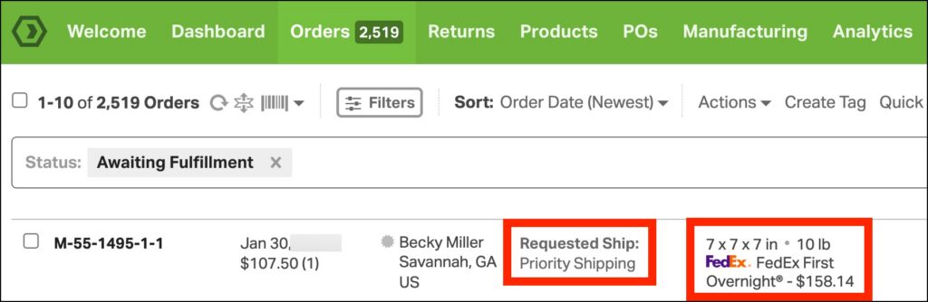 - Created a test order with Priority Shipping and confirmed the preset applied.