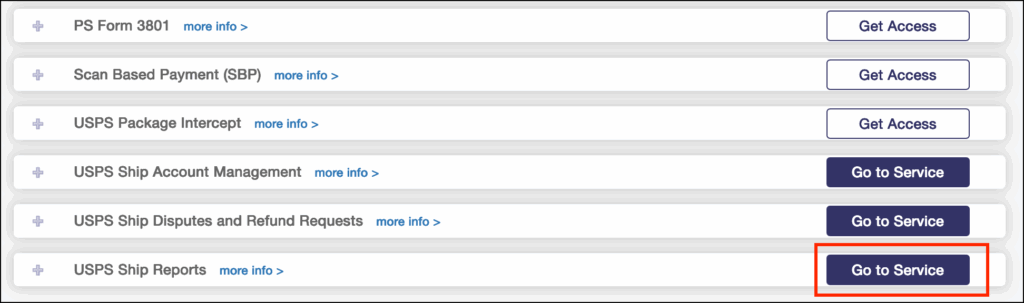 2. Go to USPS Reports and select Go to Service.