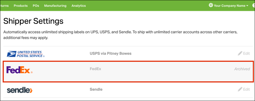 - The carrier will be marked as Archived and shown in grey on your Shippers page.